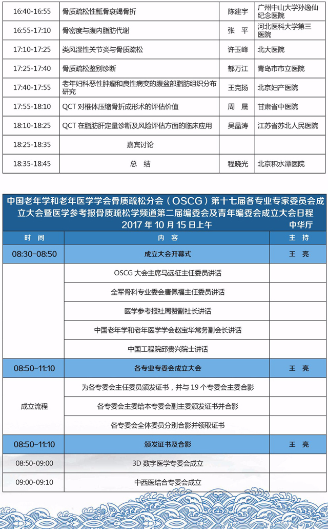 中国老年学和老年医学学会骨质疏松分会(OSCG)第十七届学术会议暨各专家委员会成立大会会议通知