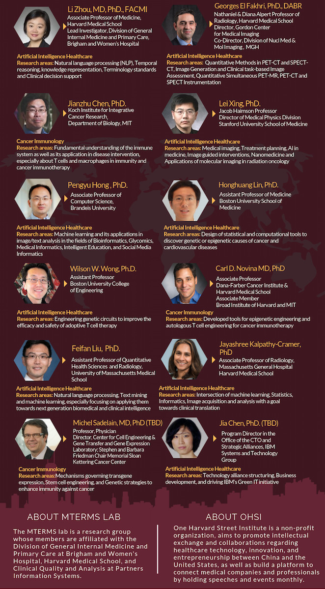 金秋十月,美丽的波士顿红叶缤纷。查尔斯河面波光粼粼,映照着哈佛和MIT的倒影。就在秋高气爽的时节,Harvard Medical School (HMS) 和One Harvard Street Institute(OHSI)邀请你参加第一届健康科技峰会:AI医疗和肿瘤免疫。我们请到中美的资深科学家,精心为大家准备了一场医疗科技的大型学术。