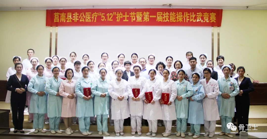 为进一步规范临床护理技术操作,提升县域非公医疗机构整体护理水平,为患者提供专业、优质的护理服务,在5·12护士节来临之际,中国非公立医疗机构协会成员单位、骨卫士合作医院莒南县红十字永康医院发起,联合莒南县光明医院、心理医院、新城医院、开发区医院、朝阳医院5家非公立医疗机构,共同举办莒南县非公医疗机构第一届护理技能操作比武竞赛。骨卫士总裁助理兼医疗管理中心总经理刘小乡主任,骨卫士医疗管理中心护理部主任巨宝兰女士出席活动并担任评委。